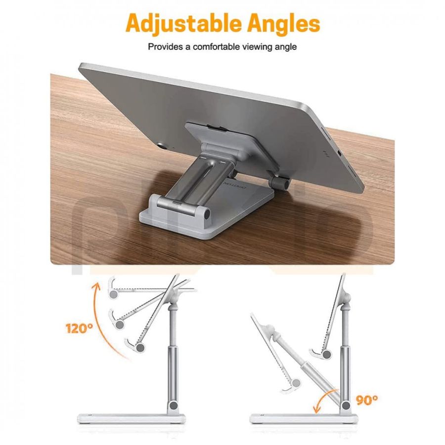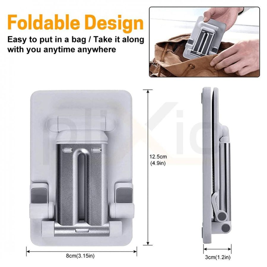 Plixio® Desktop Mobile Phone Stand , Mobile Holder, Adjustable & Foldable Mobile Stand, Aluminum Stand Holder for Mobile Phone and Tablets (Up to 9) Inches- White